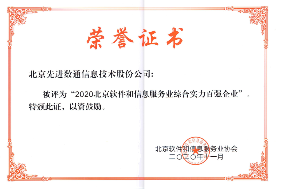 近期,北京软件和信息服务业协会召开第十届会员代表大会第一次会议暨第十届理事会,会上正式发布了《2020北京软件和信息服务业综合实力百强企业报告》和《2020北京软件企业核心竞争力评价报告》。