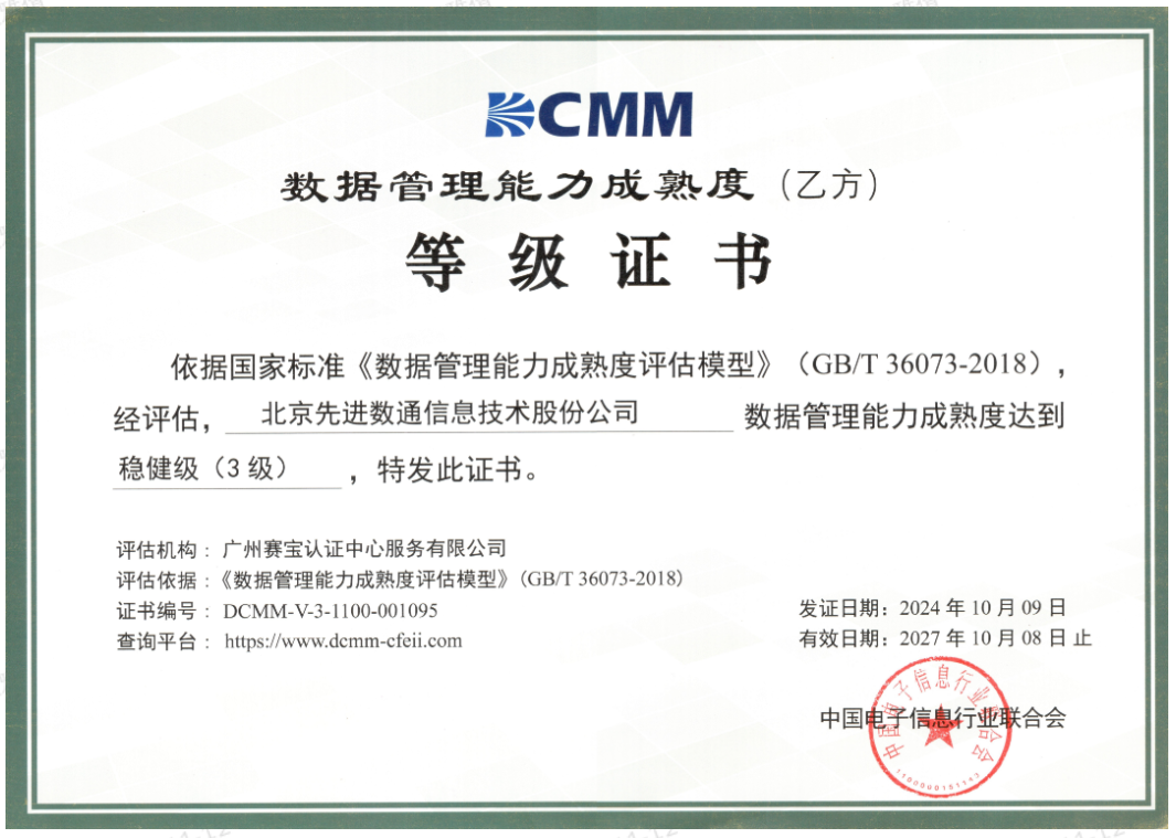 据悉,数据管理能力成熟度模型,英文Data Capability Maturity Model(简称DCMM),是我国在数据管理领域正式发布的首个国家标准,也是当前国内最权威的数据管理成熟度评估体系。标准旨在帮助企业利用先进的数据管理理念和方法,建立和评价自身数据管理能力,充分发挥数据在促进企业向信息化、数字化、智能化开展方面的价值。